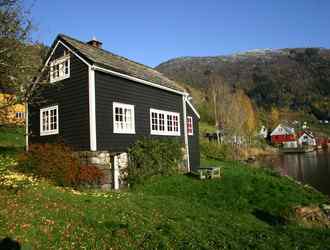 Gamlastovo The house is situated on the shore (the bank) of Ulvikpollen, at Hakastad, just outside the centre of Ulvik. The house is an old wooden building witch was renovated in 1990. A large living room and a kitchen is situated on the ground floor, Whilst the bedroom is situated in the attic. An extra bed is situated in the hallway. The house is situated apprx. 500 meters from the centre of Ulvik towards Osa, and is easily accessed by car. Car park right outside the house. Boat can be rented by appointment. | ||||||||||